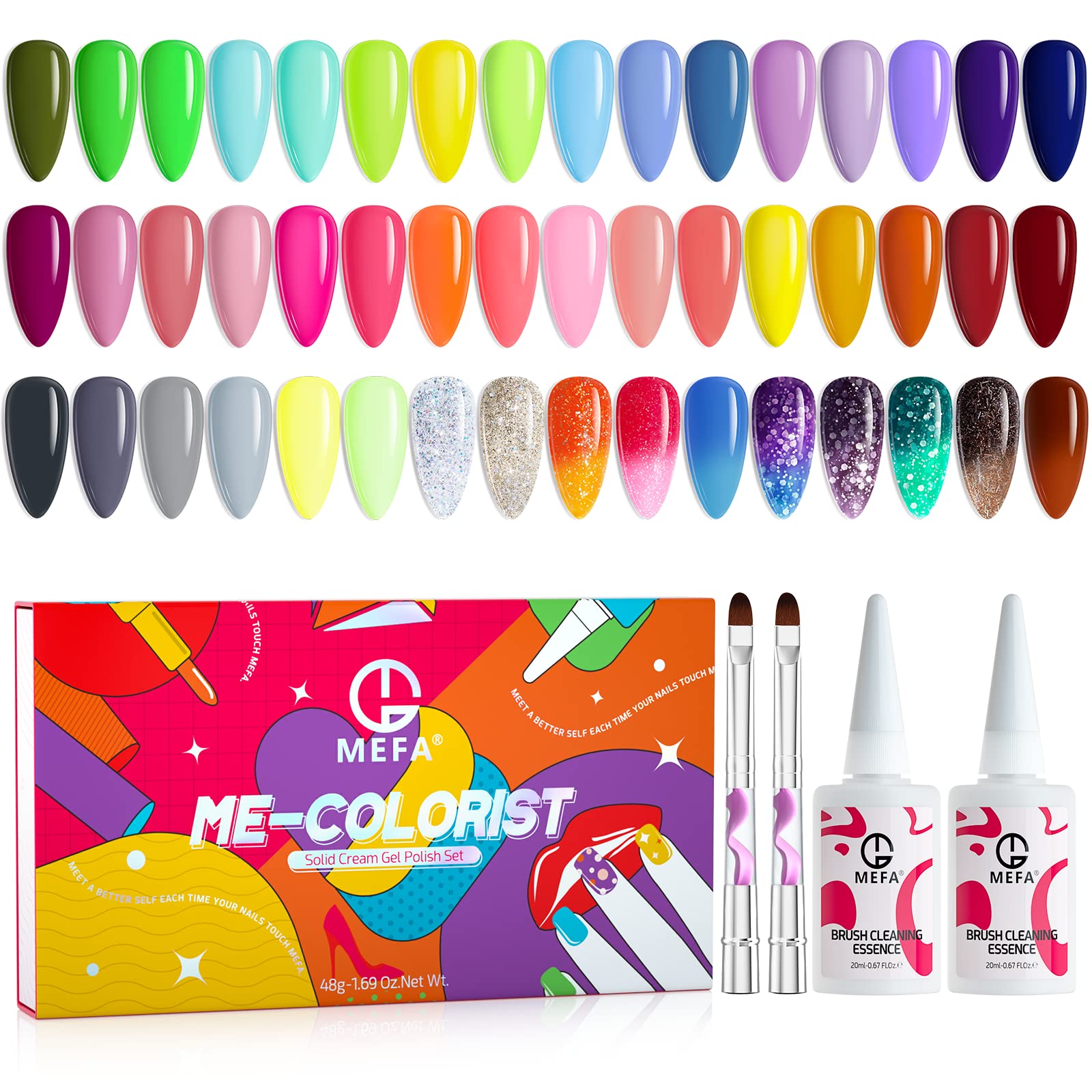 Amazon Com Solid Neon Gel Nail Polish Palette Set Mefa 48 Colors Summer Hot Pink Bright Green Orange Glitter Gel Cream Manicure Kit Soak Off Led Nail Art Kit Diy Home Gift